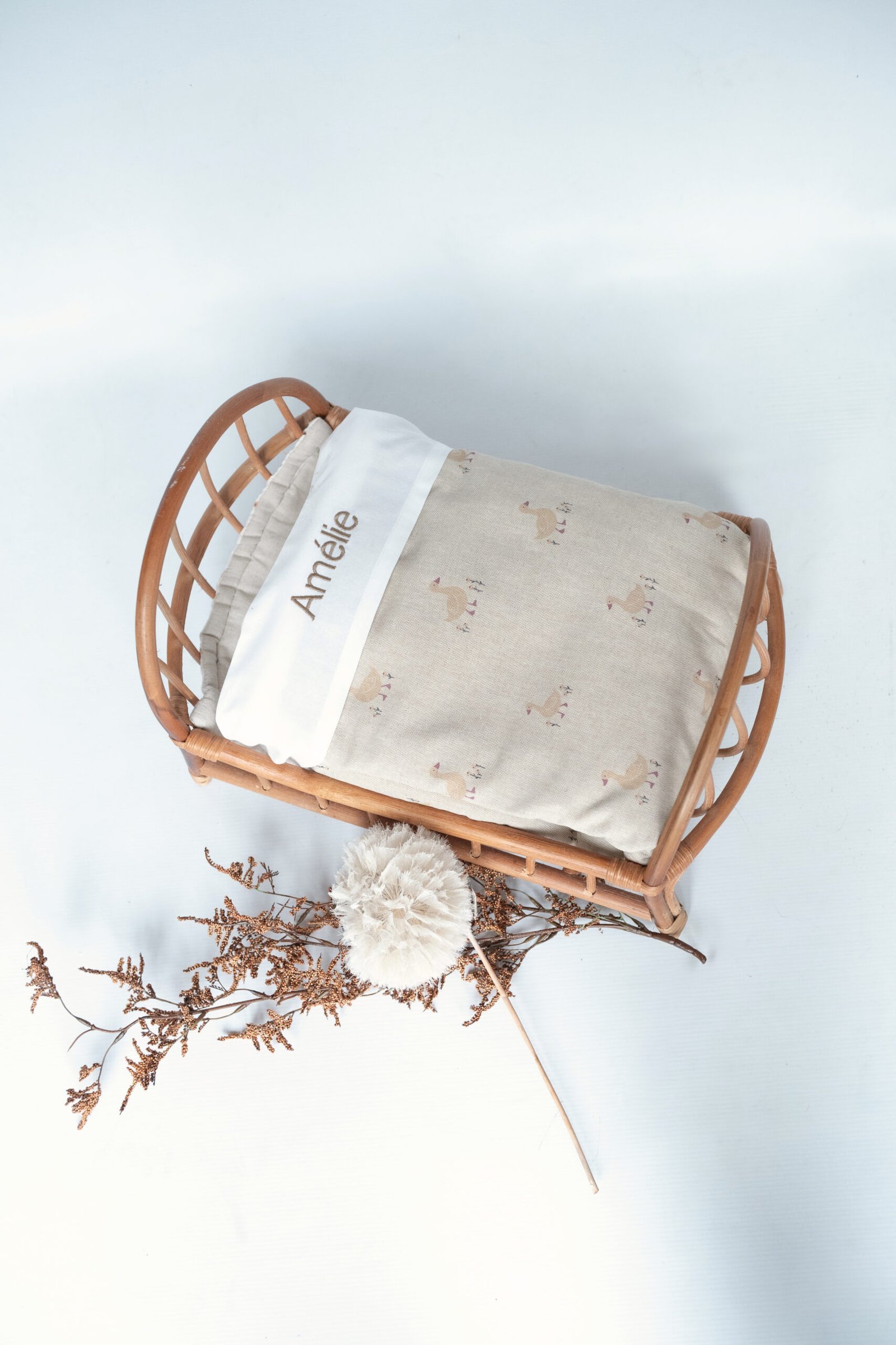 Wat deze wiegdeken extra bijzonder maakt, is dat hij wordt geleverd met twee bijpassende lakentjes, die volledig gepersonaliseerd kunnen worden met naam. Zo creëer je een uniek en persoonlijk geheel — perfect voor je eigen babykamer of als origineel kraamcadeau.